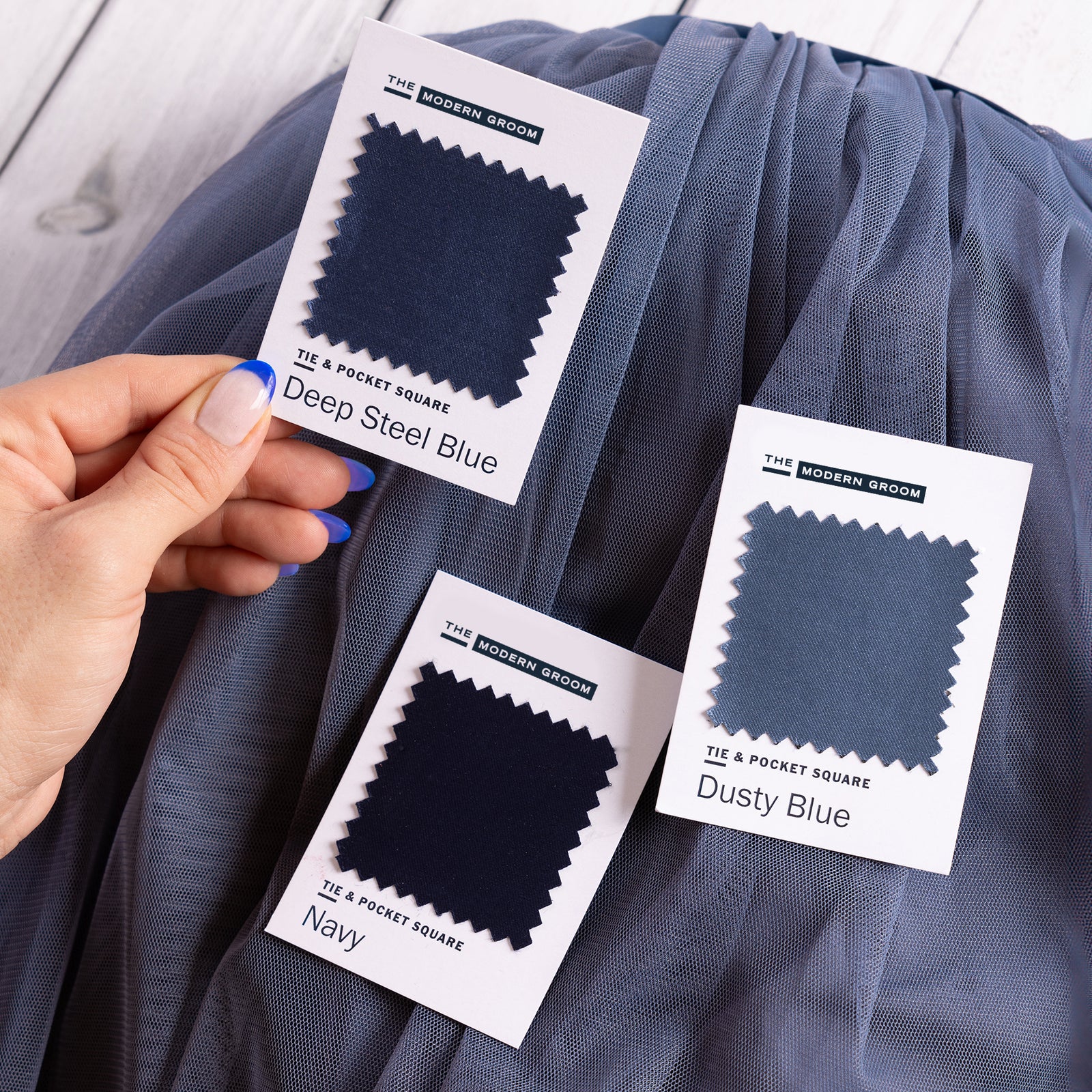 Swatches are useful tools for wedding planning. Use them to see and feel your suit, tuxedo, and accessory fabrics. Mix and match them with bridesmaids dresses, linens, florals, and more.